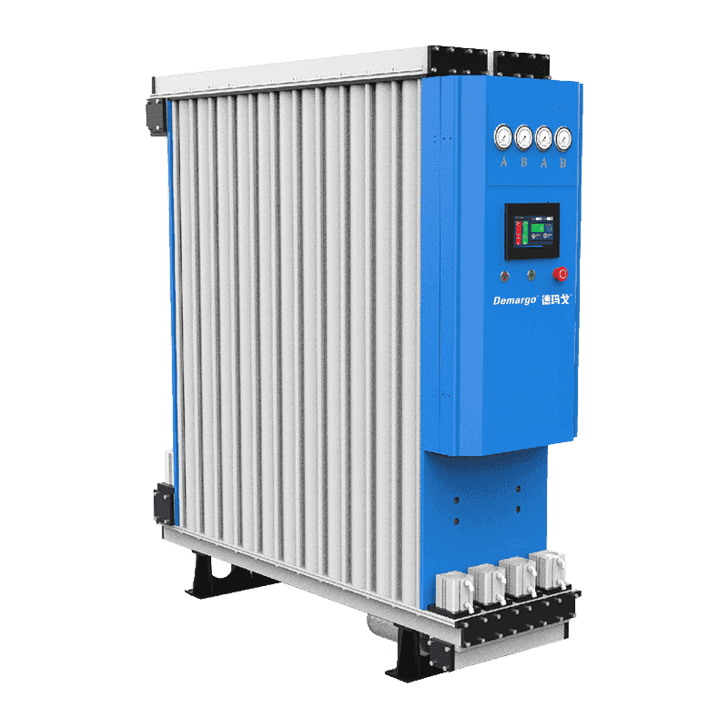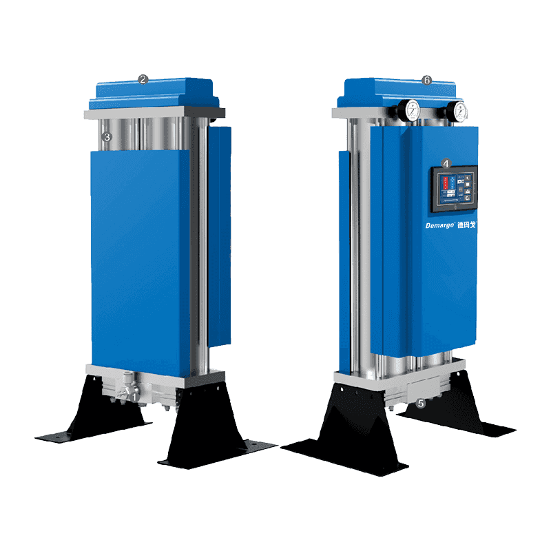 Baineann an triomadóir aeir comhbhrúite modúlach modúlach MD a tháirgeann ár gcuideachta prionsabal an asaithe luascáin brú agus glacann sé athghiniúint gan teas chun an t -aer comhbhrúite a thriomú. Is cineál túir dúbailte é an struchtúr, athghineann ceann amháin agus athghiniúintí eile.