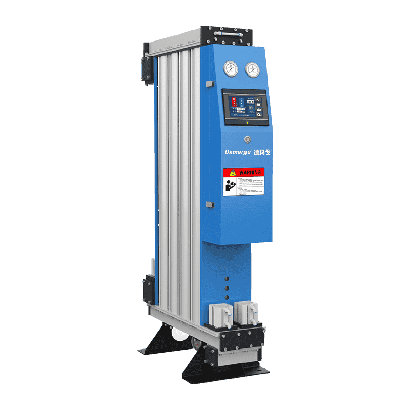 Is é an cineál gan teas ná 10 go 30 nóiméad, agus lascaíonn an cineál teasa gach 5 go 15 nóiméad. Is éard atá sa timthriall oibre ná próiseas triomaithe le haer -sreabhadh ag ardú agus próiseas athghiniúna le haer -sreabhadh ag titim. Le linn athghiniúna, tarraingítear cuid (thart ar 4 go 8%) den aer comhbhrúite triomaithe (téitear an cineál micrea-théamh le téitheoir) tríd an bpláta orifice ag leathnú agus ag laghdú brú agus téann sé isteach sa túr chun an taise a dhíothú agus a shéideadh amach sa desiccant. Nuair a aistrítear an t -athghiniúint go dtí an triomú, déantar an taise san aer comhbhrúite a asú ar an desiccant arís, agus oibríonn an timthriall ar an mbealach seo chun cuspóir triomaithe a bhaint amach.
